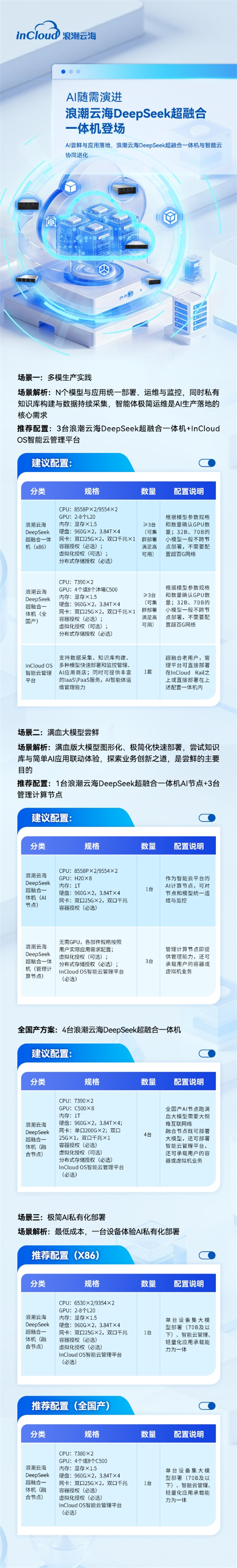 DeepSeek超融合一体机则可以或许快速建立最小化的大模子和简略单纯使用体验。同时通过前瞻性架构设想,DeepSeek超融合一体机+InCloud OS智能云平台的协同进化,面临丰硕且复杂的营业需求,确保将来可无缝升级至InCloud OS智能云平台,打制新一代企业级AI云化基座。可实现模子高效按需利用,